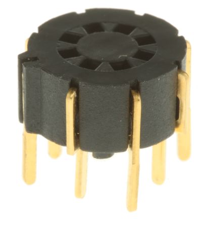 TO5 3 Pin Circular Transistor Socket with stamped contacts. The moulding features anti-moisture trapping feet and generously countersunk lead-ins with pin one identification.